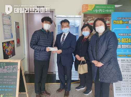 [ 데일리브라이트 = 신은성 기자 ] 평택시 원평동행정복지센터는 지난 14일, 좋은나무교회에서 나눔냉장고 사업에 사용해 달라며 100만원상당의 현물을 기탁했다고 밝혔다.
