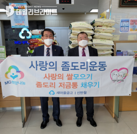 (데일리브라이트 ( DailyBright )) 안산시새마을회는 새마을금고 신반월지점(이사장 이명세)으로부터 ‘사랑의 좀도리 운동’으로 마련한 쌀(20㎏) 20포를 기탁 받았다고 18일 밝혔다.