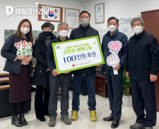 (데일리브라이트 ( DailyBright )) 남양주시 수동면(면장 이기복)은 8일 지둔3리 마을회(이장 양회관)에서 어려운 이웃을 위한 후원금 100만 원을 경기사회복지공동모금회에 지정 기탁했다고 밝혔다.