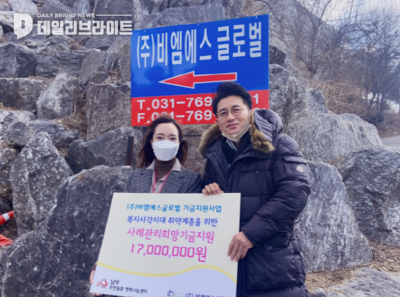 (데일리브라이트 ( DailyBright )) ㈜비엠에스글로벌 백승명 대표이사는 15일 광주시 복지사각지대 취약계층 지원을 위해 광주시 남부무한돌봄 행복나눔센터에 희망기금 1천700만원을 기탁했다.