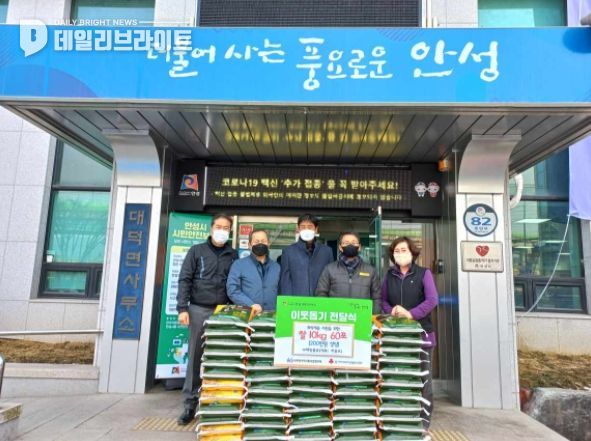 [ 데일리브라이트 ] 안성시 대덕면은 지난 25일 안성시 소재 기업인 ㈜혜인물류(대표 하용포)로부터 안성쌀 10kg 50포(200만원 상당)를 기탁받았다고 밝혔다.