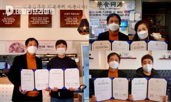 [ 데일리브라이트 ] 광주시 오포읍 행정복지센터는 지난 2일 오포읍 지역사회보장협의체, 푸주옥(대표 오유진), 다께야(대표 이승복), 이음만두(대표 이하연)와 복지사각지대 발굴과 취약계층 지원을 위한 2022년 ‘오포읍 복지사랑방’ 업무협약을 체결했다.