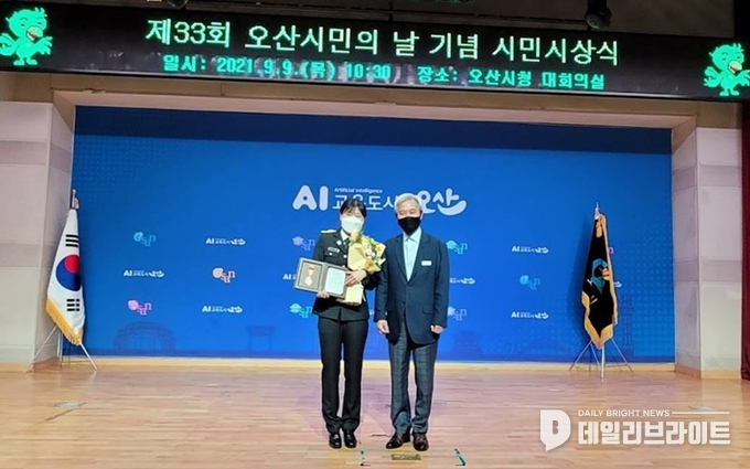 [ 데일리브라이트 = 신재철 기자 ]오산소방서(서장 윤성근)는 오산시에서 개최한 제33회 오산시민의 날 기념 시민 시상식에 지역사회 발전을 위해 헌신·봉사한 우수공무원 표창 중 소방행정 분야에 소방사 김소연이 오산시장상을 수여했다고 10일 전했다. 오산시민의 날은 오산시 전 시민이 함께하는 의미있는 화합의 장으로 애향심과 선행심을 기반으로 지역사회 발전을 위해 헌신하고 봉사한 분들께 감사의 마음을 전하는 날로 이날 행사는 9일 10시 30분에 시청 대강당에서 이뤄졌다. 이날 소방행정 분야에서 수상을 한 오산소방서 119구급대 소방사 김소연은 2017년 11월 소방에 입문해 그간 3,500여 회 인명구조 및 구급활동, 하트세이버 수여, 코로나19 관련 구급활동 등에 기여한 공로를 인정받아 이 상을 수상했다..